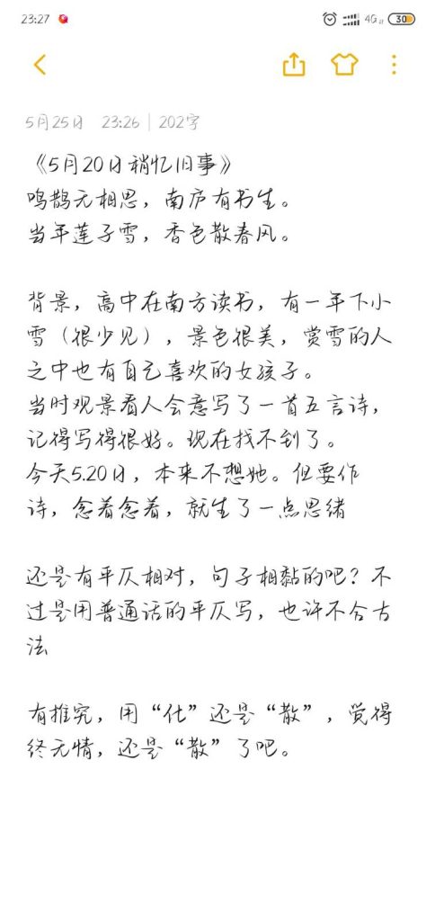一方面当时我遇到了一位好语文老师,她用真正【使用语言】的方式教我们去阅读古诗文并积累语言表达,一方面我自己当时对这些用语积累也产生了兴趣,在老师的影响和自己兴趣下,会去像翻字典看小说一样去翻上海图书出版社的古诗词词典,见得多了,也学着自己写。还有一方面就是当时自己进行的语言研究,这个就一言难尽了,但你看多一点或许就能猜到看到我干了什么。